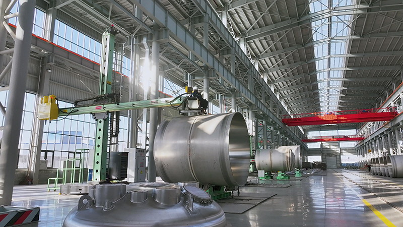 這座全新車間總投資1.6億元,盤活109畝閑置土地,建成超1.8萬(wàn)平方米標(biāo)準(zhǔn)化廠房,專攻不銹鋼等特材壓力容器的規(guī)?;?、高精度生產(chǎn)。